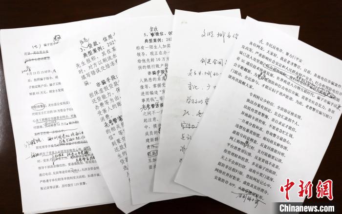 图为曹晓鸣写的反诈视频文案草稿。 赵江宏 摄