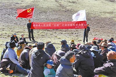 为了方便群众诉讼,打通服务人民群众“最后一公里”,德格法院马尼干戈人民法庭不断延伸司法服务触角,着力建设具有自身特色优势的“枫桥式人民法庭”,将“马背法庭精神”落到实处,牧民群众游牧到哪里,流动法庭就搬到哪里,法官就走到哪里。白雪皑皑的虫草山上,一场场精彩纷呈、生动活泼的宣讲让现场听众凝神倾听,帐篷顶上鲜红的党旗猎猎飘扬,成为4500米海拔之上最亮丽的风景线。(则绒卓玛)