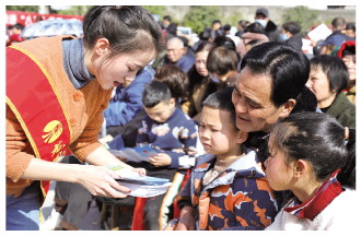 图为恩施州政府工作人员向群众宣传保障农民工工资支付相关法律法规。 恩施州司法局供图