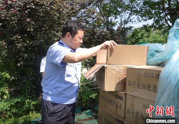 民警查扣的“粒子能细胞康复液”。 江北公安供图