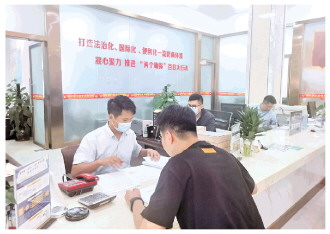 图为万宁市行政审批服务大厅工作人员正在为群众办理业务。