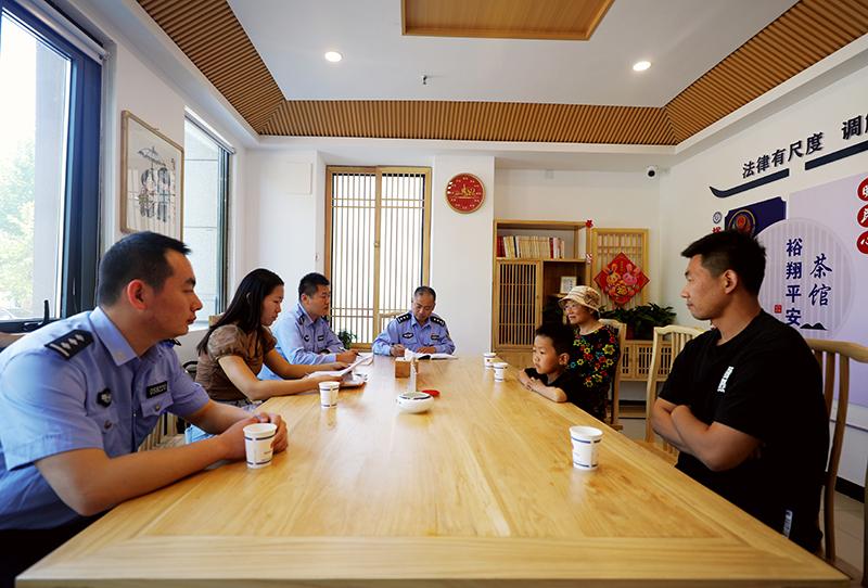 民警在“裕翔平安茶馆”为群众调解纠纷。