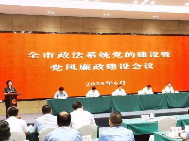 6月30日下午,南京全市政法系统党的建设暨党风廉政建设会议在南京市中级人民法院召开。会议深入学习贯彻习近平新时代中国特色社会主义思想,持续贯彻落实党的二十大精神,深入推进学习贯彻习近平新时代中国特色社会主义思想主题教育,全面贯彻落实中央、省、市委关于从严管党治警的部署要求,总结工作、分析形势、部署任务,推动全市政法系统党的建设和党风廉政建设再上新台阶。南京市委常委、政法委书记徐锦辉出席会议并讲话。南京市中级人民法院院长李后龙、市检察院检察长熊毅、市委主题教育第七巡回指导组组长蒋蕴翔出席会议,副市长、市公安局局长常和平主持会议。