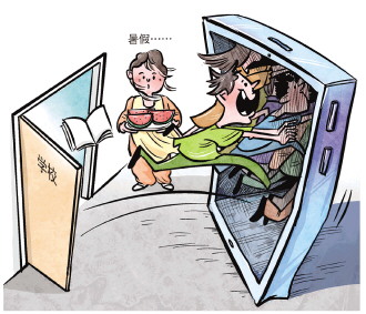 暑假来临,许多未成年人喜欢坐在空调房里盯着电脑,把大量时间花在网络上,美其名曰“电子消暑”。