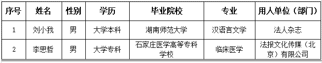 经公开招聘,拟录用以下2人为报社聘用人员,现将拟录用人员信息公示如下: