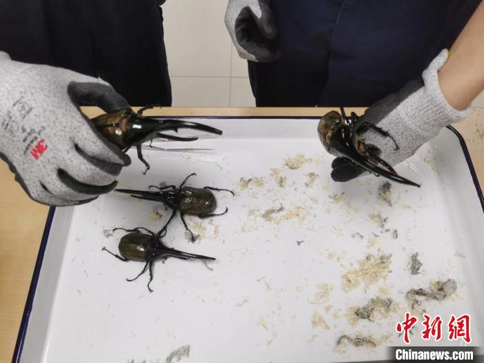 上海邮局海关在进境邮件中查获长戟大兜虫 陈丰 摄