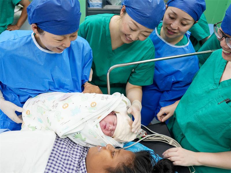 中国海军“和平方舟”号医院船在基里巴斯为29岁的塔拉瓦居民德阿瑞接生了一名“和平宝宝”(2023年7月16日摄)。新华社发(刘伟 摄)