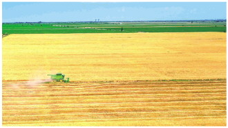图为近日,农机手驾驶联合收割机在新疆呼图壁县二十里店镇宁州户村收割小麦。 新华社发 丁磊 摄