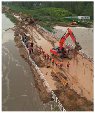 在河北省涿州市,中部战区陆军第82集团军某旅先后担负望海庄村、朱庄村、东茨村等地堤坝抢险加固、险情排除、巡堤护坡任务。