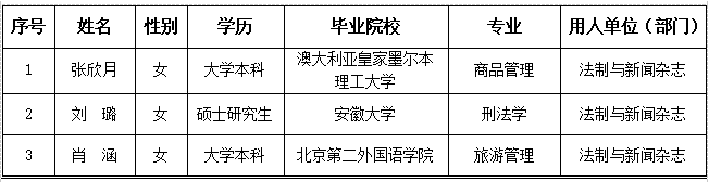 经公开招聘,拟录用以下3人为报社聘用人员,现将拟录用人员信息公示如下: