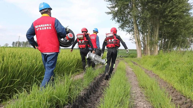 地处卡岔河流域的肖乡村道路泥泞,发电车无法进入现场。电力部门紧急调拨一台100千伏安变压器,经过消防战士、电力员工和当地群众近7小时的共同努力,终于将排水泵、电缆、水带等设备铺设完毕。