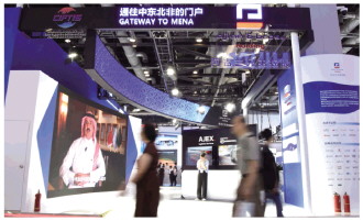 9月4日,观众从服贸会的沙特阿拉伯阿吉兰兄弟控股集团展台经过。新华社记者 武巍 摄