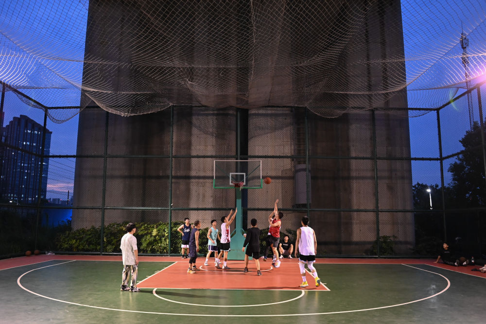 2022年9月20日,杭州市民在位于高铁桥下的钱江世纪城体育公园打篮球。新华社记者 黄宗治 摄