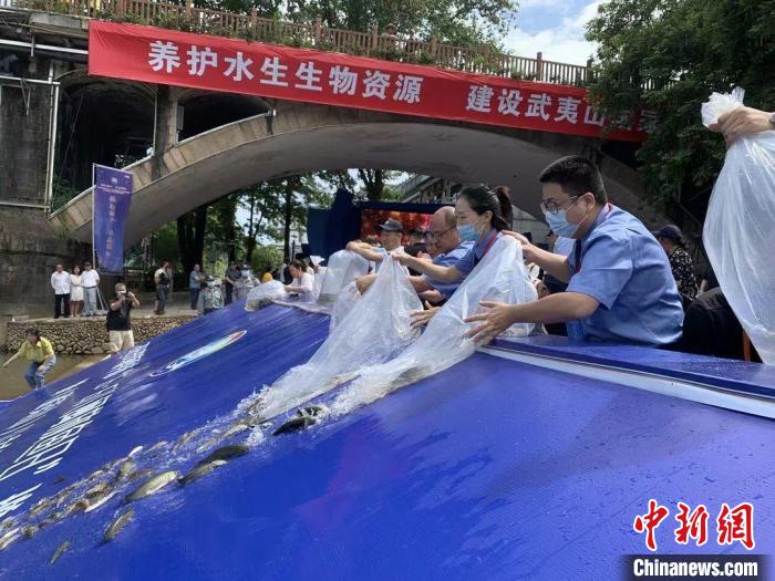 .武夷山市人民检察院在崇阳溪开展增殖放流活动。 王焕娟摄