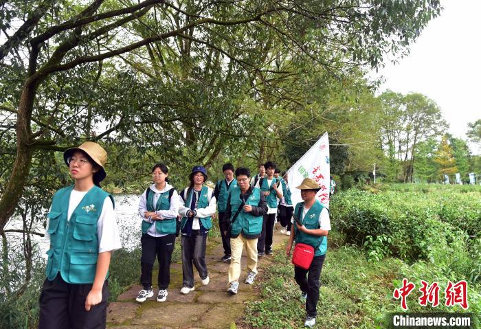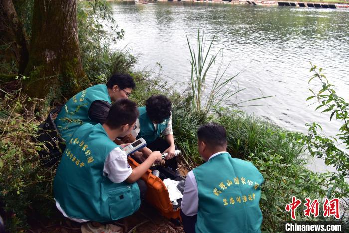 生态司法巡护志愿服务队前往九曲溪上游开展“探秘国家公园 共护武夷青绿——岸上九曲自然景观多样性调查”活动。中新网记者张丽君摄