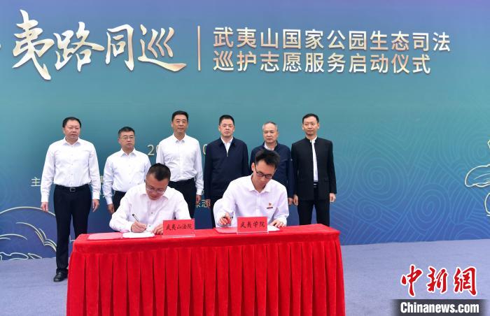 中新网武夷山10月12日电(张丽君 祝金妹彭琳)在武夷山国家公园成立两周年之际,12日,武夷山市人民法院、武夷山国家公园、武夷学院于福建省武夷山联合举办“萱草花·夷路同巡”武夷山国家公园生态司法巡护志愿服务启动仪式。