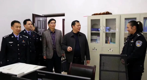 图为黄英德(左三)生前到公安机关调研。