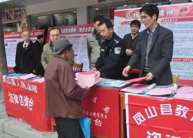 图为黄英德(右一)生前开展法治宣传工作。