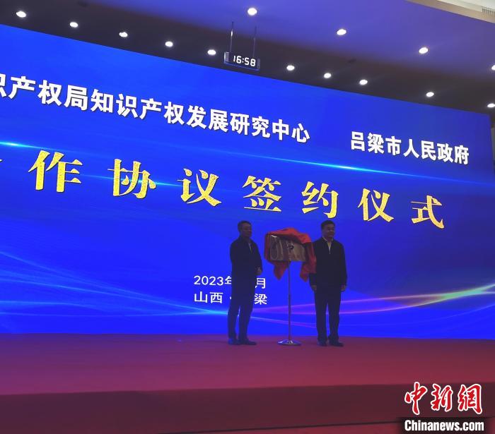 当日下午,吕梁市政府与国家知识产权局知识产权发展研究中心合作协议签约仪式暨向民间资本推介专利技术发布会在山西吕梁举办。现场签署《知识产权引领吕梁创新绿色发展的运用促进研究合作协议》,并为知识产权发展研究中心吕梁工作站揭牌。