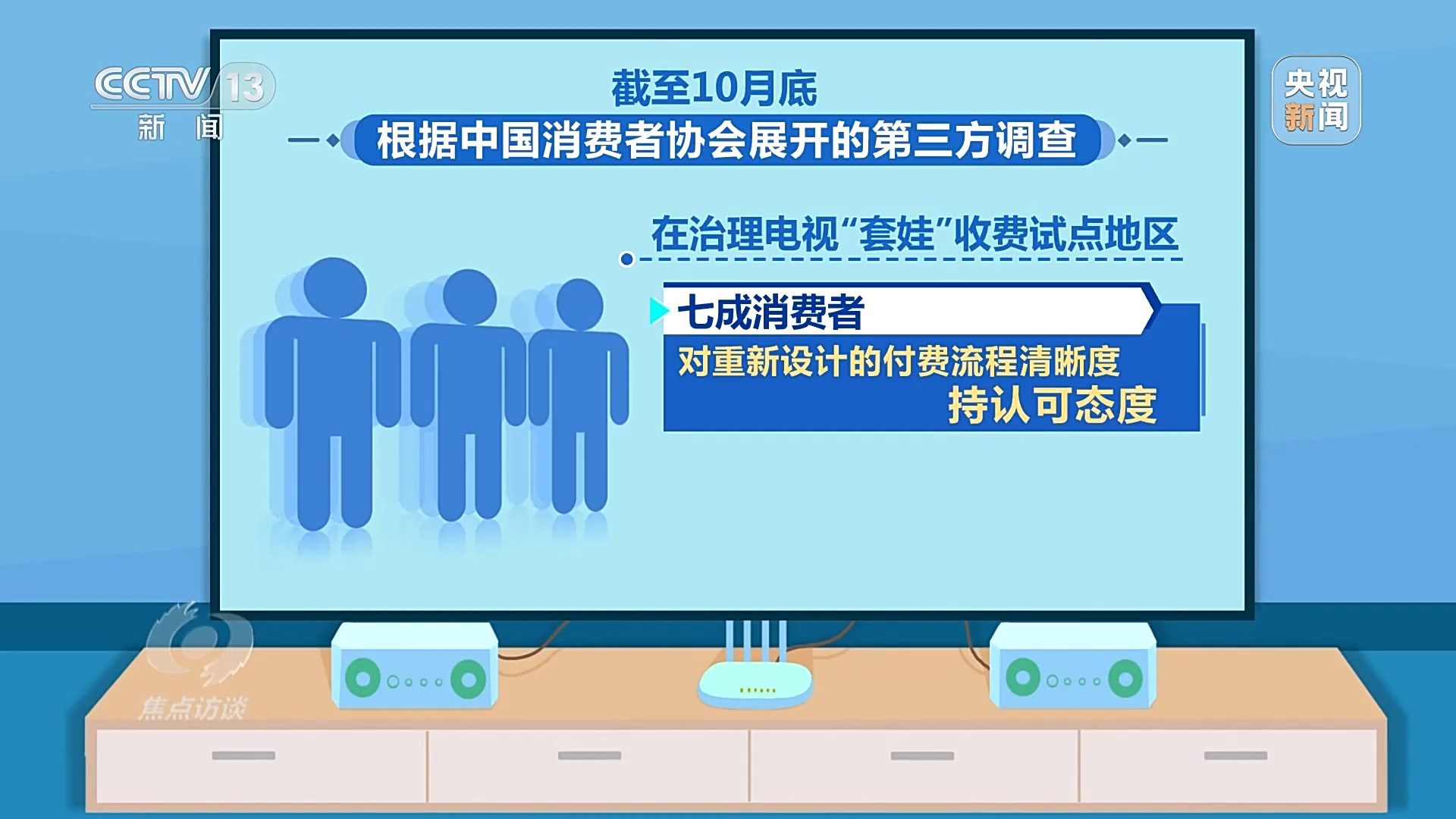 中国消费者协会消费监督部主任 张德志:原来认为主要是面对老年消费者不能进行有效操作,我们发现现在很多年轻的消费者也存在着困扰。在收费方面,个性化服务本身是一件好事,但是如果不能进行有效明码标价,这样就给消费者带来很多困惑,同时也会涉嫌侵犯消费者的知情权、选择权和公平交易权,很多消费者就放弃了看电视这种选择。