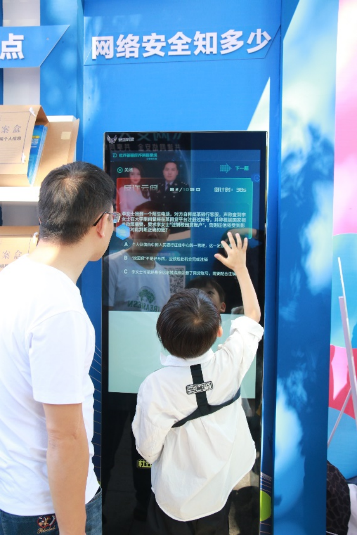 在本届警营开放日中,《网安天下》联合深圳网警为现场观众提供了一场丰富多彩的网络安全盛宴。记者在现场看到,每个互动环节都大排长龙,几个特色板块吸引了不少观众前来观看。