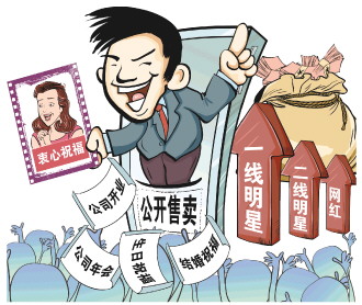 ● 网络平台上存在一条明星通过录制祝福视频进行收费的产业链。一方面,个人和商家有需求,但又没有明星渠道,另一方面,部分当红艺人需要赚点外快,对于新生艺人或者过气艺人来说,这更是一条生存渠道