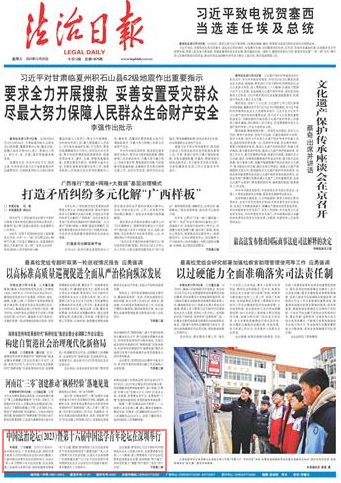 本报讯 记者唐荣 12月17日至18日,由中国法学会、广东省委政法委、深圳市委市政府主办的中国法治论坛(2023)暨第十六届中国法学青年论坛在深圳举行。论坛以“深入学习贯彻习近平法治思想,在法治轨道上全面深化改革开放,加快构建新发展格局”为主题,围绕“深刻领悟习近平法治思想关于坚持党的领导若干重要论断”“深入学习贯彻习近平法治思想,以高水平法治保障广东高质量发展”“以习近平法治思想引领中国特色社会主义法治先行示范城市建设”等专题进行了交流研讨。
