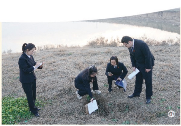 渭南中院行政庭干警现场勘查河滩湿地。