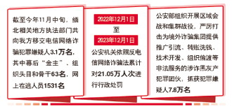 ——2022年12月1日至2023年12月1日,公安机关依照反电信网络诈骗法累计对21.05万人次进行行政处罚。