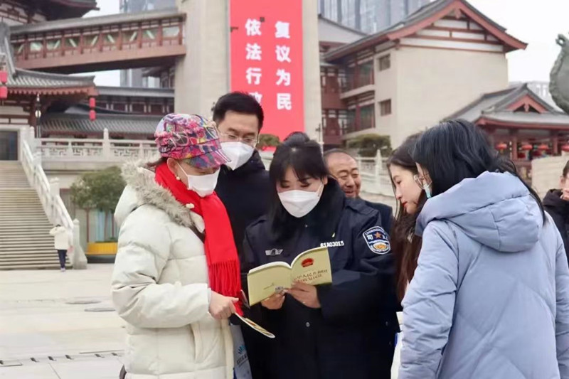 2023年12月,陕西省西安市司法局有关工作人员与莲湖区司法行政干警一起走上街头,向群众广泛宣传新修订的行政复议法,现场接受群众咨询。(均为资料图片)
