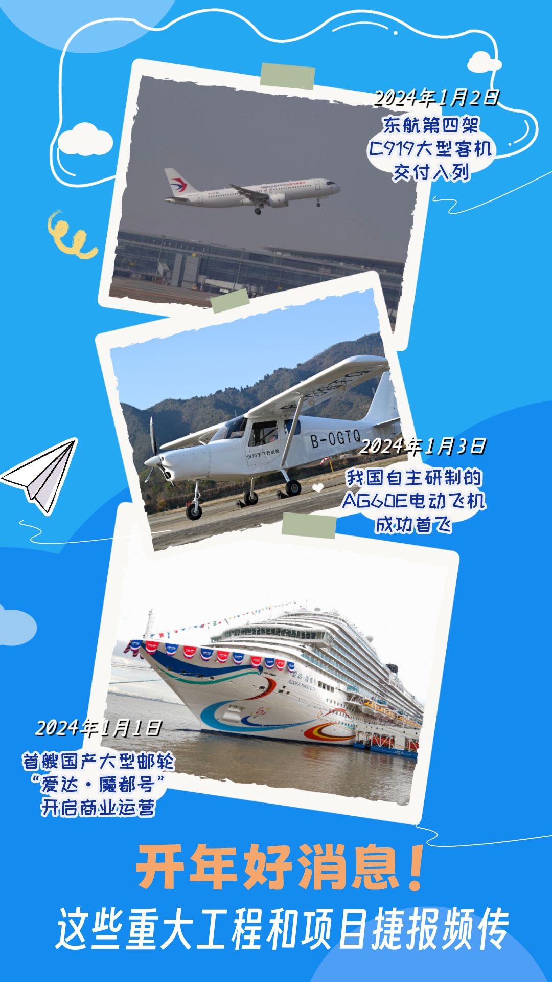 新年伊始,我国多个重大工程和项目捷报频传。这些消息令人振奋,开启了干劲十足的2024。