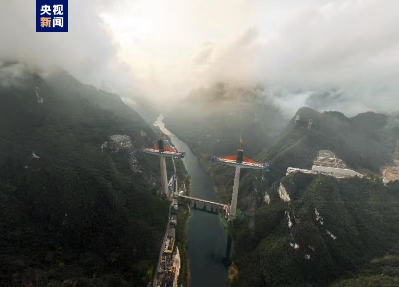 亚洲第一高墩矮塔斜拉桥磨寨乌江特大桥索塔封顶