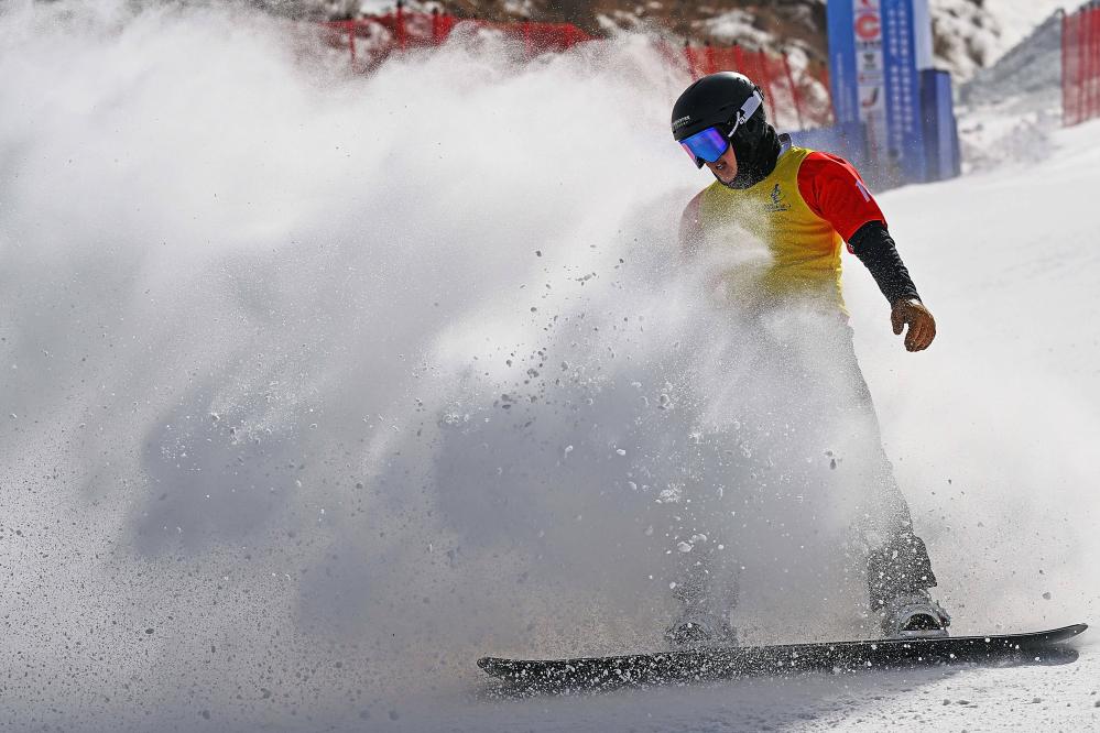 在乌兰察布市凉城赛区,有“雪上跑酷”之称的单板滑雪障碍追逐赛在紧张刺激的你追我赶中产生四枚金牌。