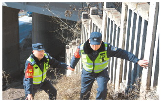 中午过后气温升高,地上的雪融化后,路上满是泥泞,一段原本只需两个小时的巡查区段,最后用了4个小时才走完。一路下来,民警的身上、鞋子上和手上满是泥土。