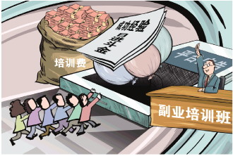 在这样的背景下,副业培训市场快速升温。其中,一些培训机构以“入行门槛低、市场紧缺”“零基础也可以变身××大师”“保底月入过万”等招揽学员,甚至诱导学员贷款支付培训费。而不少学员付费后发现,培训课程敷衍、承诺的派单也没有实现,被割了“韭菜”。