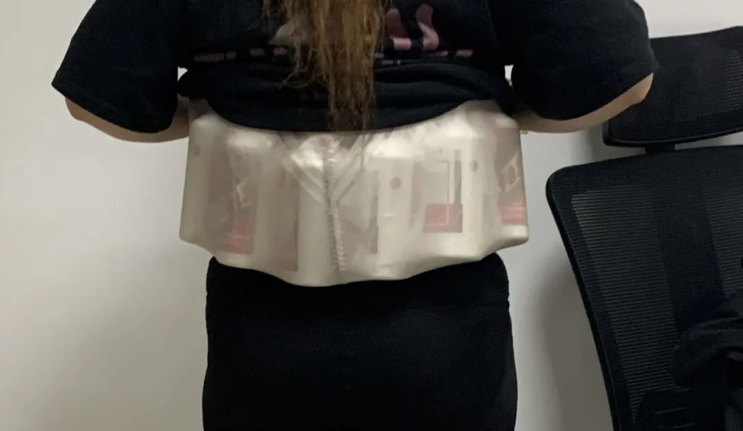 3月12日下午,一名黑衣女子经港珠澳大桥珠海公路口岸珠澳旅检进境大厅无申报通道进境,关员发现该女子行走步伐异常,立即将该其拦截。经进一步查验,关员从该女子腰腹部查获绑藏的7瓶茅台酒。