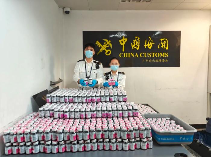 中新网4月17日电据“海关发布”微信公众号消息,近日,广州海关在广州白云机场空港口岸查获一批旅客违规携带进境的保健品,共计1374瓶。