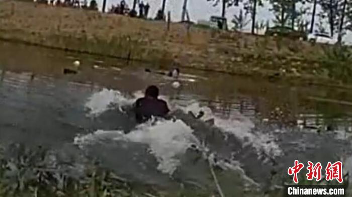 官山派出所副所长王松立即组织警力赶往现场救援。到达现场后,只见轿车仅后备箱部分还水面之上,一名男子已经从车里爬出来并蹲坐在后备箱上。“我往河边走的时候,发现轿车下沉速度变快,同事正在准备游泳圈等救生装备。时间紧急,实在来不及,我就直接跳下去了。”王松讲述,他游到男子身边时,轿车已经沉入水底。幸好附近河面有一块泡沫板,他让男子拿着泡沫板,自己慢慢将其拽到岸边。岸上民警协力,将落水者拉上岸。