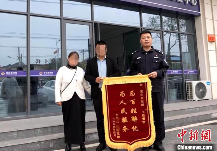 仝先生和母亲来到派出所送上锦旗致谢。睢宁警方供图