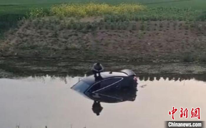 落水者不会游泳,只好蹲在车上等待救援。睢宁警方供图