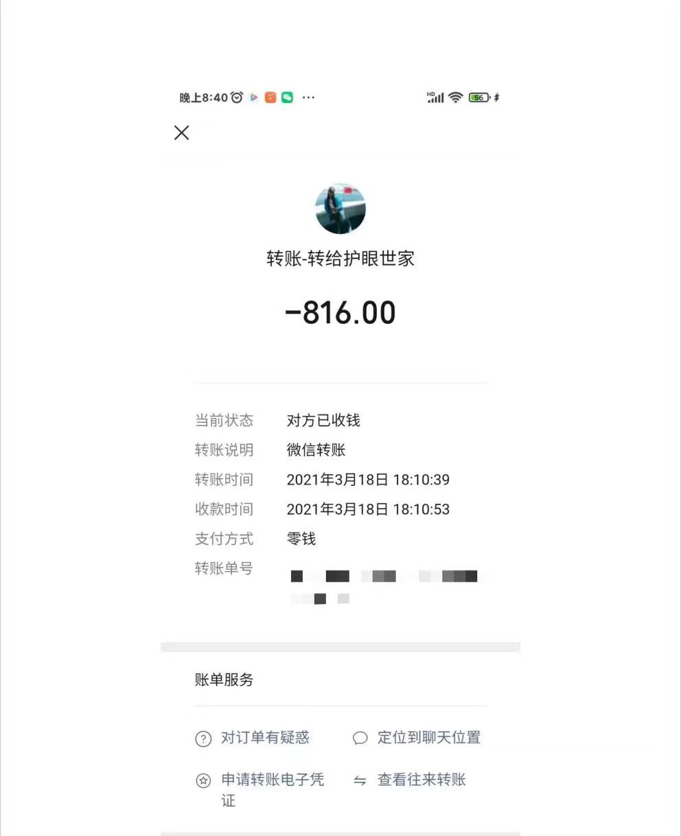 近日,宁夏的任先生向澎湃质量观投诉平台反映,2021年3月,他的小姑任女士看到一篇宣传“优视盾智能多频眼镜”的推文后,带她女儿在宁夏石嘴山市平罗县护眼世家视力康复咨询服务中心(以下简称平罗县护眼世家)花5316元配置了这款宣称“可以逐步降低度数”的近视防控功能眼镜。