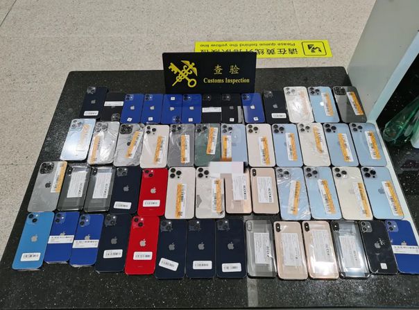 中新网5月29日电 据“海关发布”微信公众号消息,近日,拱北海关所属青茂海关查获一起旅客绑藏52台旧苹果手机进境案。