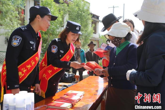图为西藏边检总站执法调查支队民警向民众普及《民法典》知识。徐锡万 摄