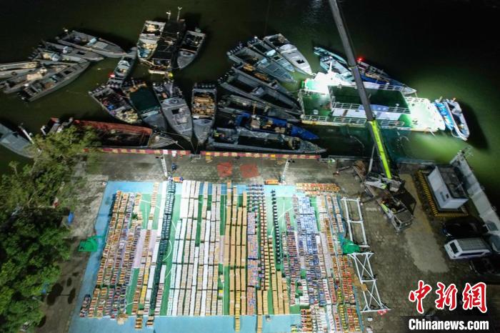 中新网防城港5月31日电(苏杰) 广西防城港海警局31日通报,该局日前在防城港市江平镇万尾附近海域开展“净海2024”打击海上走私专项行动,破获一起特大海上走私案,查扣37艘涉嫌走私船舶,抓获涉案人员13名,查获涉案香烟22.5万余条、白酒1670瓶,总案值约8000万元人民币。