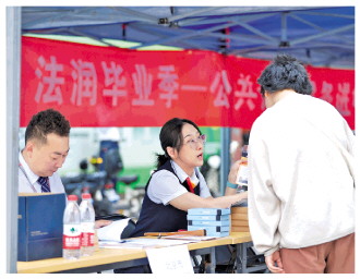 六月五日,在北京市司法局与首都师范大学联合举办的“法润毕业季”活动中,公证处工作人员在校内设立流动公证服务点,为有需求的同学提供便捷的公证指引。据悉,只要当事人的材料齐全,符合受理条件及出证条件,跑一次就可以办好公证书。 (北京市司法局供图)