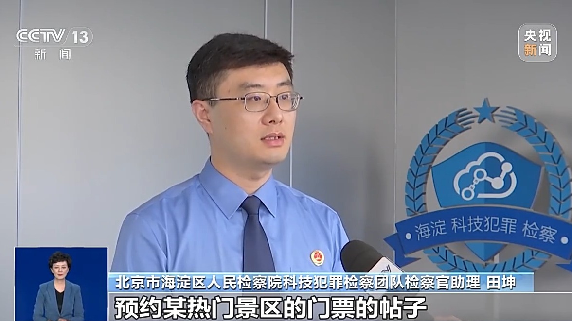 北京市海淀区人民检察院科技犯罪检察团队检察官助理田坤:他们会在某二手物品的交易平台、购物平台,还有一些自媒体平台上,发布一些可以帮助代抢热门景区门票的信息。