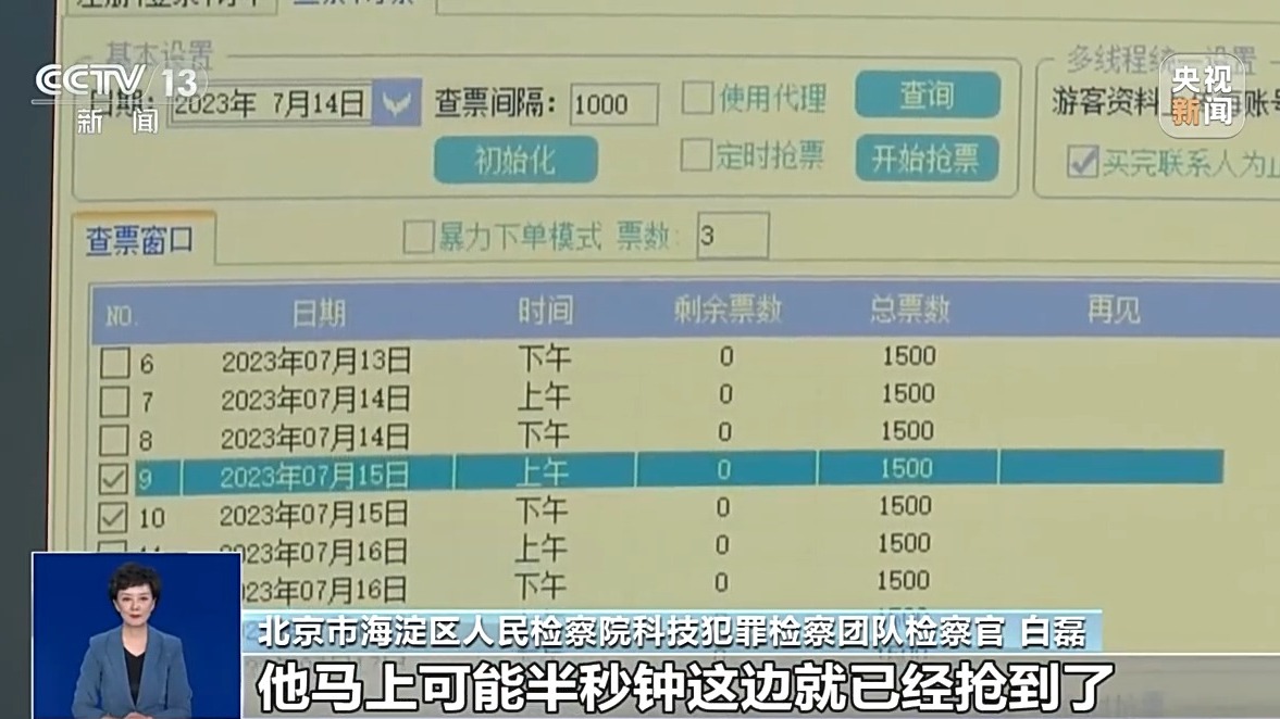 北京市海淀区人民检察院科技犯罪检察团队检察官白磊:正常抢号,步骤操作下来可能一分钟、两分钟就没了。但是他提前把信息输进去,一放号,可能半秒钟就已经抢到了。