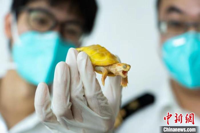 图为港珠澳大桥海关关员查获的红耳彩龟。 林昌锋 摄