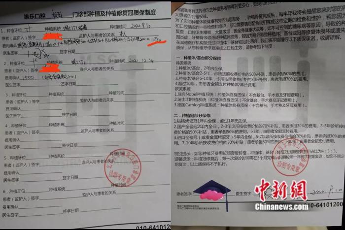图为王梅当时与北京维乐口腔签订的质保协议 受访者供图