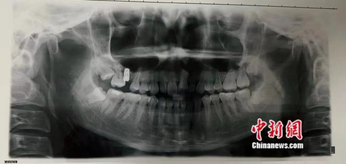 王梅告诉中新健康,她当时右边缺牙,本身咬合就不好,种牙时认为北京维乐口腔医院医生很专业,就对医生的解释信以为真。后在矫正时发现,由于这颗种植牙较低的缘故,导致现在只能用左侧吃饭。